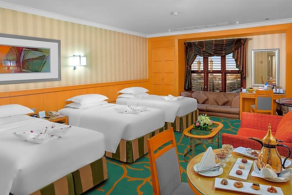 Enjoy beautiful views of the world's largest mosque, Al-Masjid Al-Haram from this spacious deluxe guest room with three twin-sized beds, sofa bed and a small kitchen. Work at the desk using WiFi, unwind with a movie on the TV, or enjoy a meal at the dining table. Sofa beds will be prepared according to reserved number of guests.